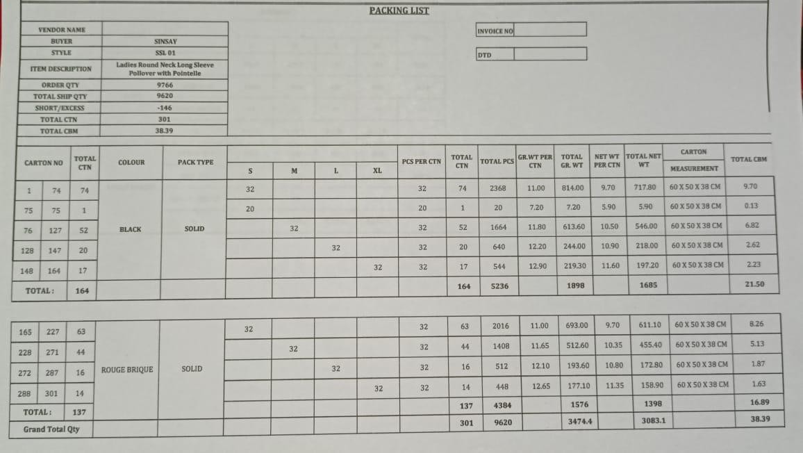 Packing List: available