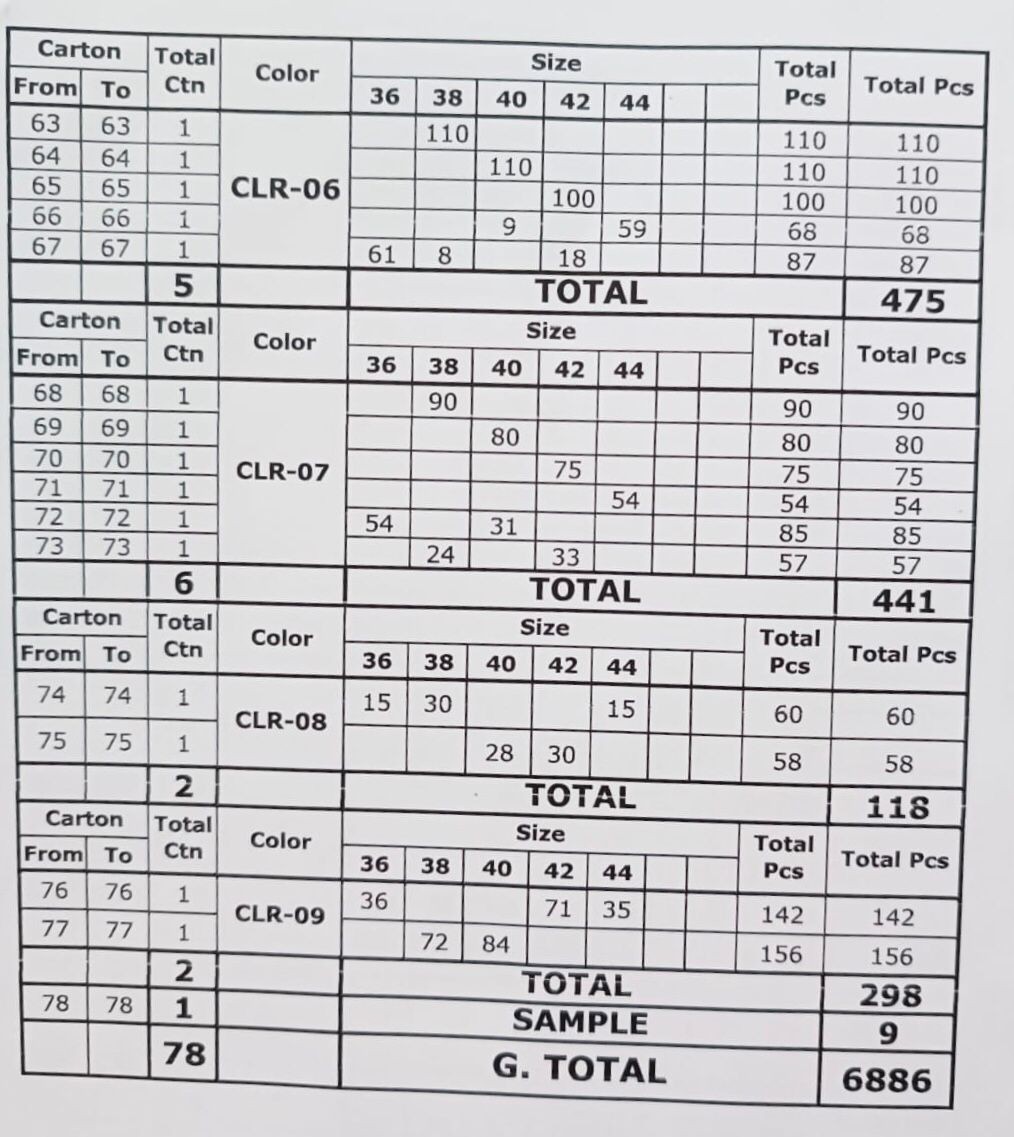 Size: 36 to 44