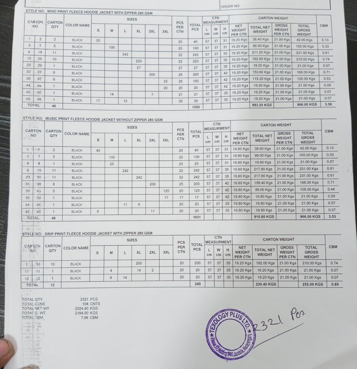 Packing List: available