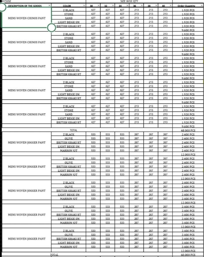 Twill Pants: 90,000pcs