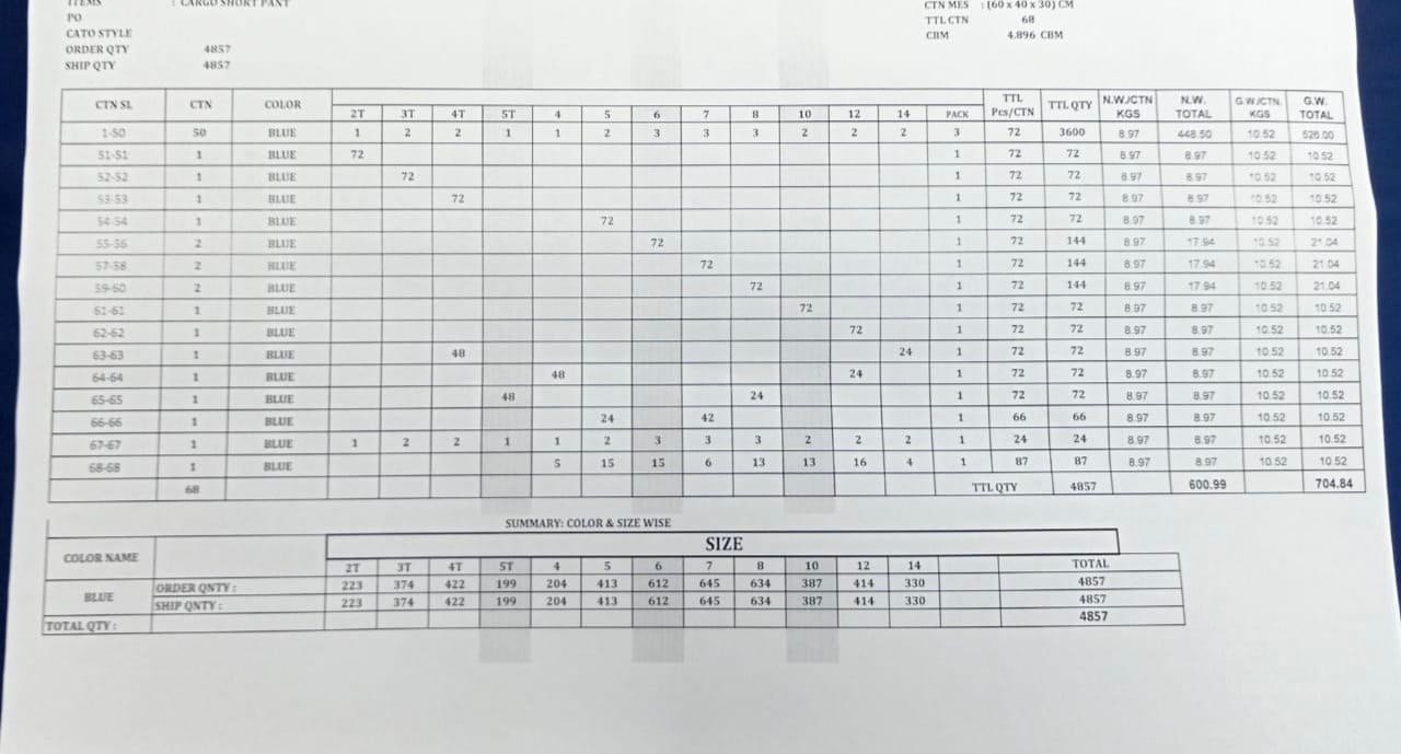 (fob from any port of Bangladesh)